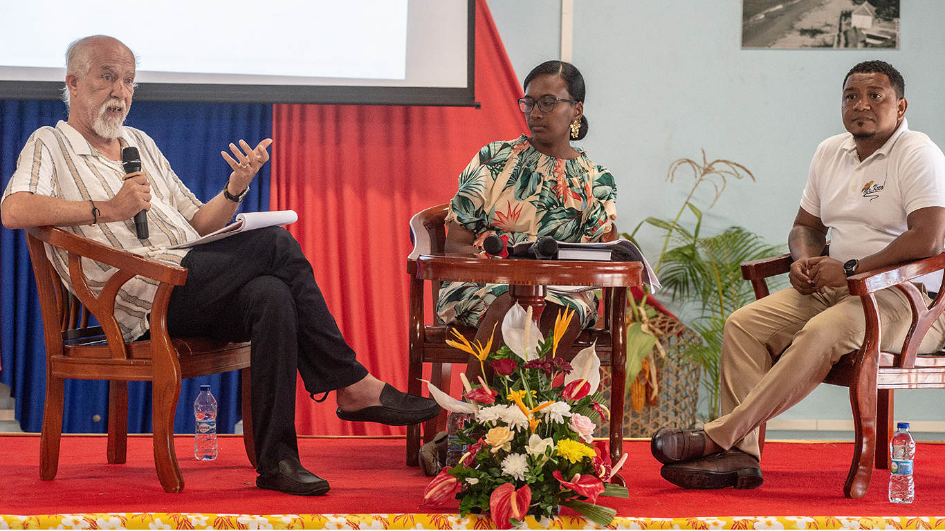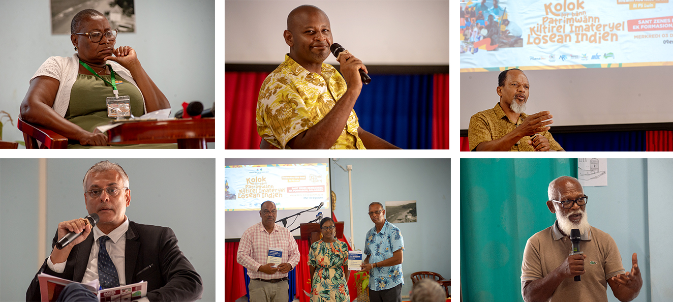 Devant un public présent en nombre, des acteurs de l’océan Indien ont échangé sur les enjeux de préservation et de transmission du patrimoine culturel immatériel de l'océan Indien, avec des interventions marquantes du Dr Deborah Yanni Shamir Maury (Rodrigues), Reuban Lespoir et Emmanuel D’Offay des Seychelles autour de la sauvegarde de la culture et langue créole. Une table ronde, animée par Zyno Alfred, président de l’Agalega Island Council, a permis d’aborder les questions de reconnaissance et de valorisation des identités culturelles, enrichies par le témoignage d’Anne Marie Saint-Marie, représentante du groupe de réfugiés des îles de l'archipel des Chagos et Zakaria Mall, directeur de l’agence réunionnaise Komkifo. Le colloque s’est conclu par l’intervention de Davy Williams Perrine, responsable Arts & Culture de Rodrigues, appelant à conjuguer mémoire et innovation pour assurer la vitalité du patrimoine régional.