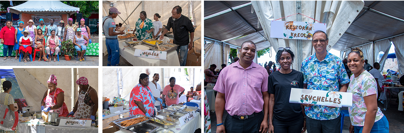 ▪️Anne Marie Saint-Marie, représentante du groupe de réfugiés des îles de l'archipel des Chagos, Davy Williams Perrine, responsable Arts & Culture de Rodrigues, Zyno Alfred, président de l’Agalega Island Council, Zakaria Mall, directeur de l’agence réunionnaise Komkifo, Johnson Roussety, Chef commissaire adjoint de Rodrigues, la Dr Deborah Yanni Shamir Maury (Rodrigues), Joseph Varok Ravina, président du comité organisateur du Festival Kréol Rodrigues et commissaire à la Culture, aux Arts, à la Jeunesse et aux Sports et Aurèle André, président, Discovery