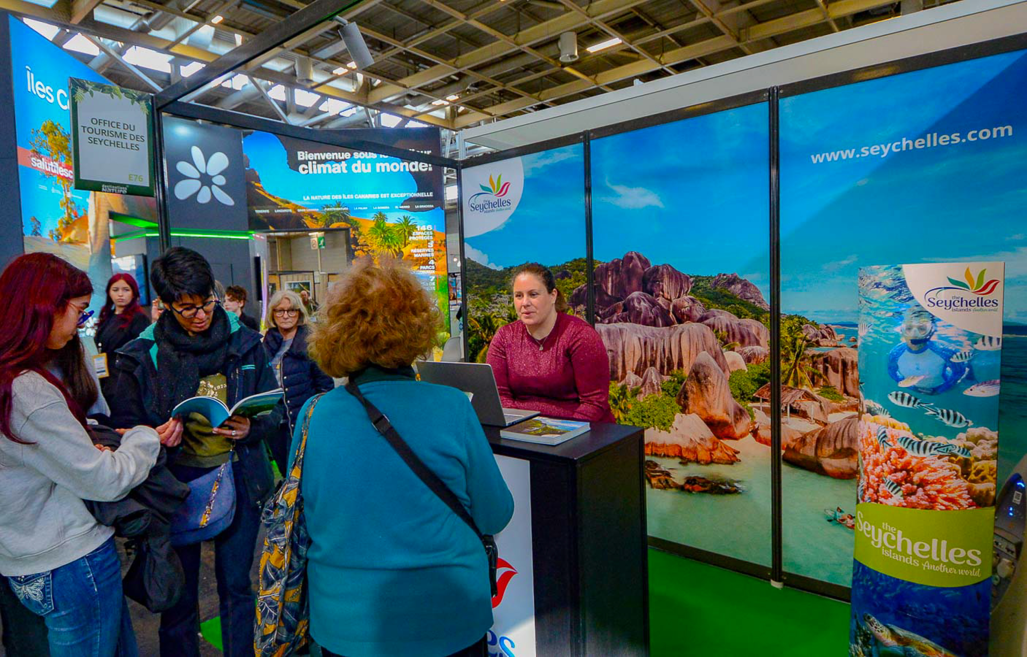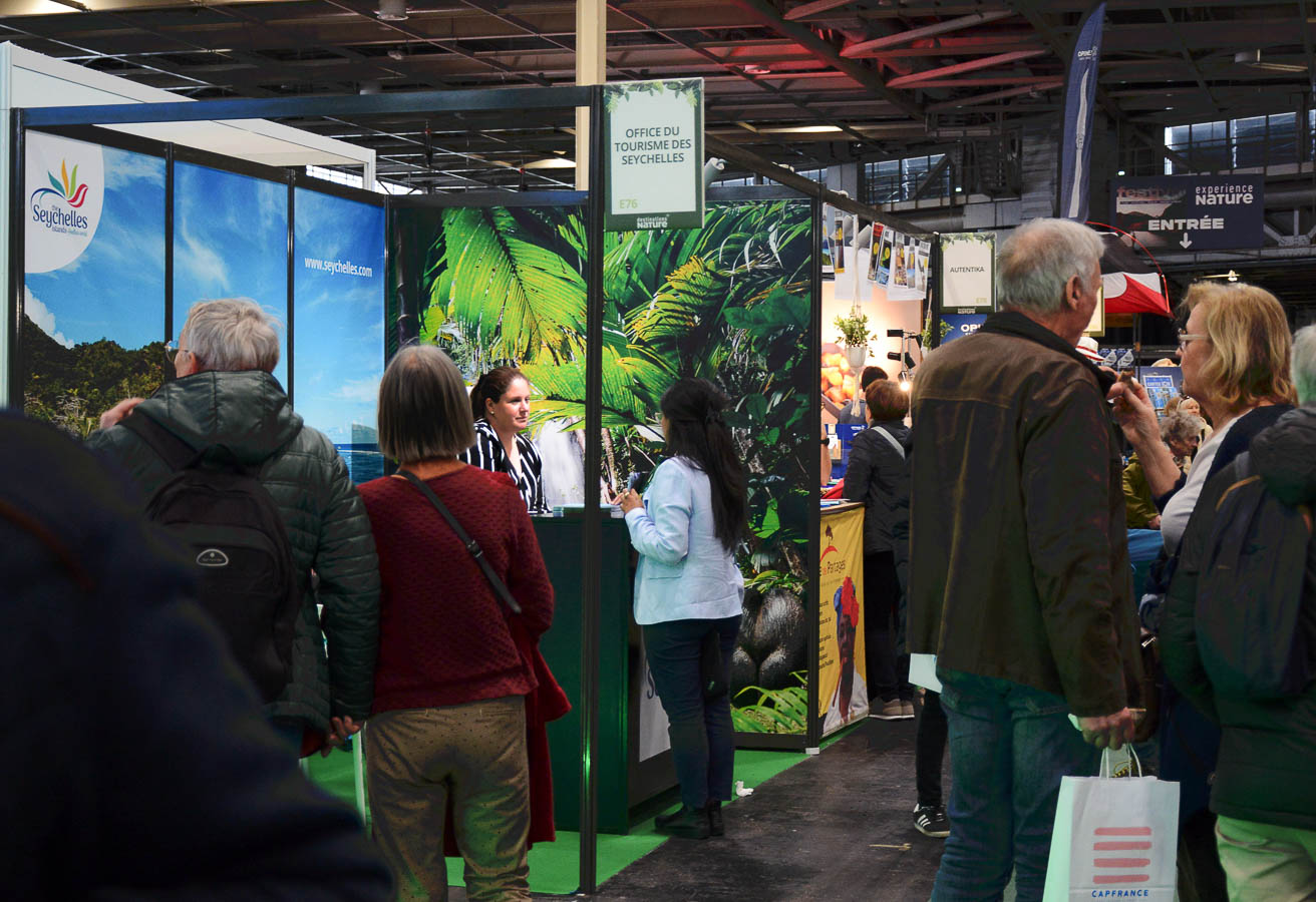 Le stand des Seychelles, unique destination de l’océan Indien représentée lors de l’édition 2026 du Salon Destinations Nature, a attiré l’attention de nombreux visiteurs.