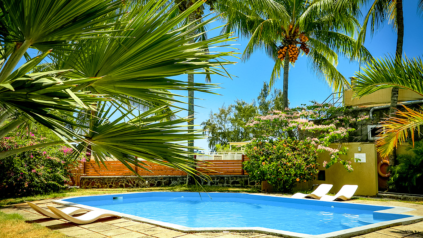 ◾️ L’Auberge Les Filaos et sa piscine, où confort et cadre harmonieux se conjuguent pour un séjour inoubliable.