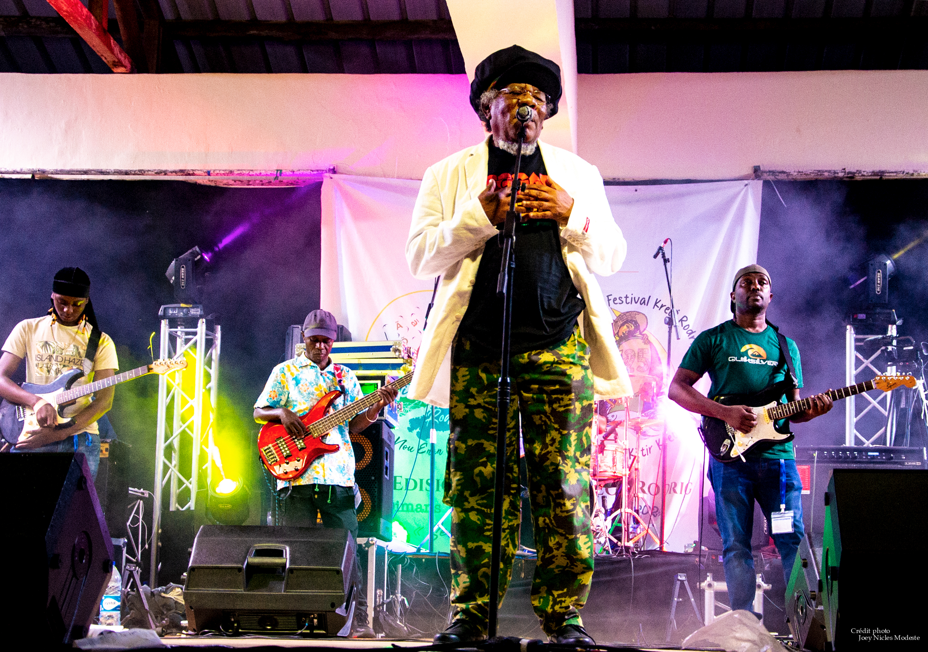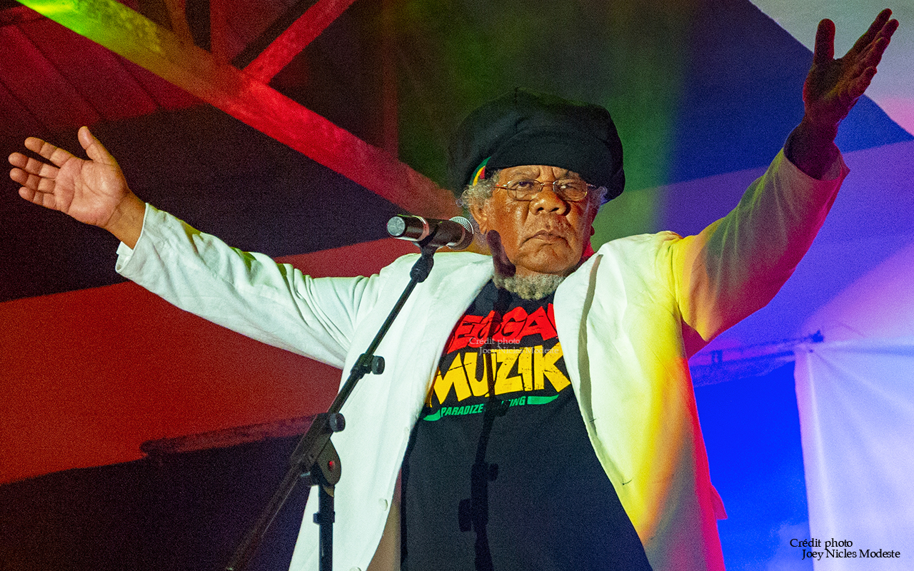 Ras Natty Baby en pleine performance à Grand Baie, en décembre 2024, dans le cadre de l’édition du Festival International Kreol Maurice, un moment vibrant et chargé d’émotion, marquant l’une de ses dernières rencontres musicales avec son public. Crédit photo © Joey Nicles Modeste.