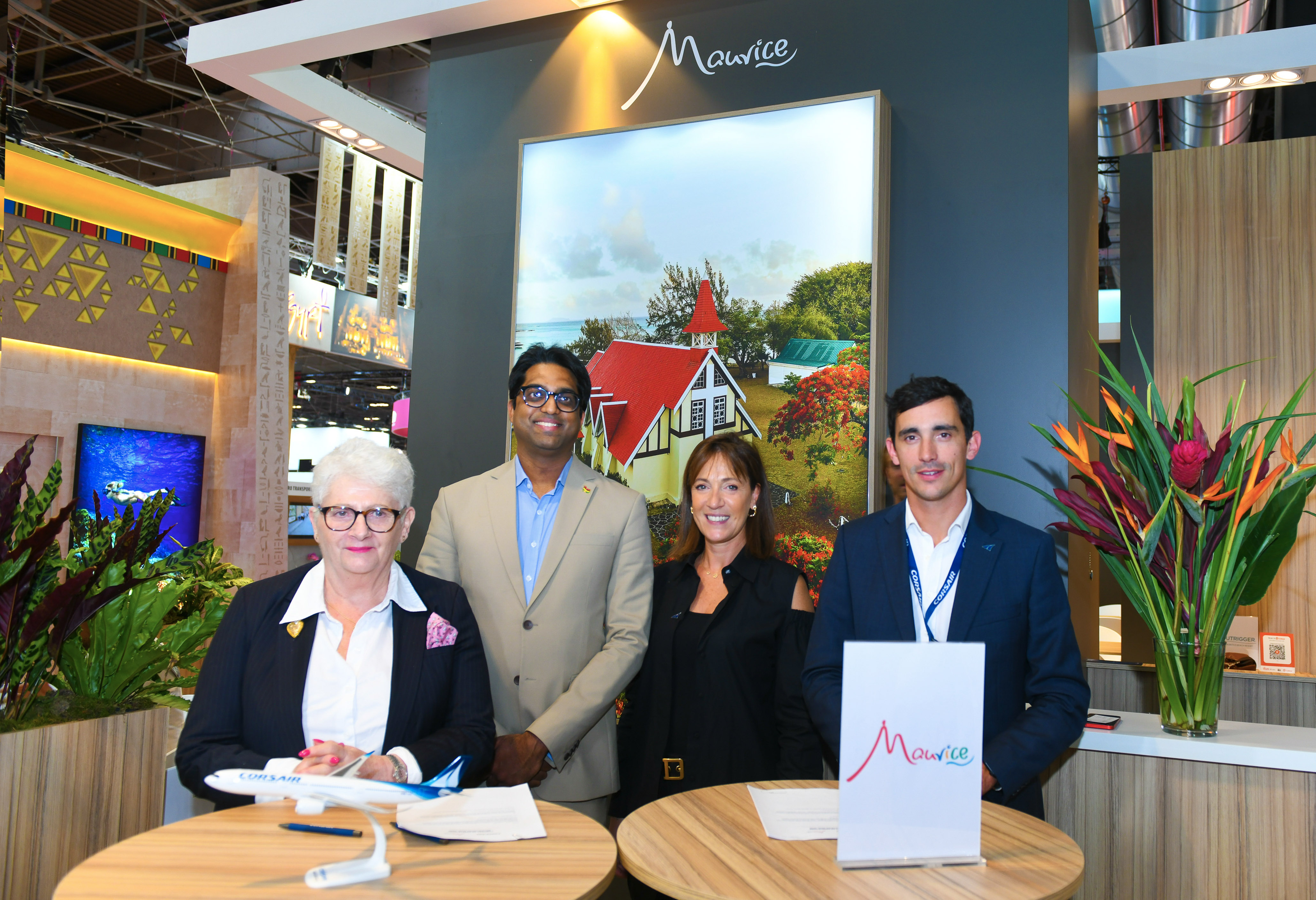 L’accord a été signé par Avinash Teelock, directeur de la Mauritius Tourism Promotion Authority (MTPA), et Karen Levy, directrice Expérience Client et Communication de Corsair, en présence de Claire Le Lay, présidente de la MTPA, ainsi que de Jules Perreau, directeur régional Océan Indien de Corsair.