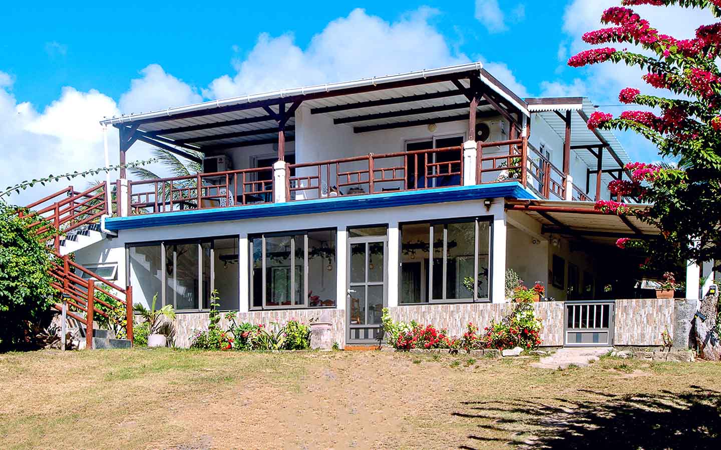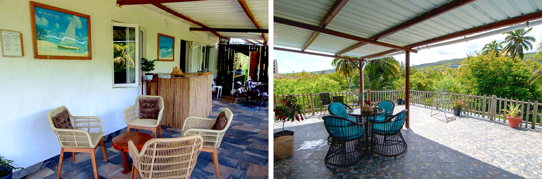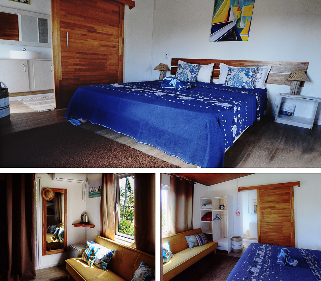 La guest house, nichée au milieu d’agrumes et d’arbres fruitiers, bénéficie d’un cadre idyllique et se situe à quelques mètres d’une plage souvent déserte, parfaite pour se détendre. L’étage accueille quatre chambres élégantes : deux s’ouvrent directement sur le lagon, tandis que les deux autres donnent sur une vaste terrasse offrant une vue magnifique sur les reliefs verdoyants de Graviers. Margarette incarne l’hospitalité rodriguaise avec simplicité et générosité. Sa cuisine raconte un héritage familial transmis de génération en génération, et son rire communicatif ajoute au charme de la maison. Le rez-de-chaussée reste un lieu convivial, où, comme le souligne la Rodriguaise originaire du village voisin Anse Fémi, « Les clients aiment particulièrement partager le repas avec nous, échanger et se sentir pleinement chez eux.»